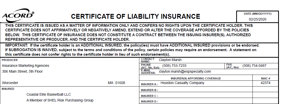 Contact: Coastal Elite Basketball — Florence, Oregon